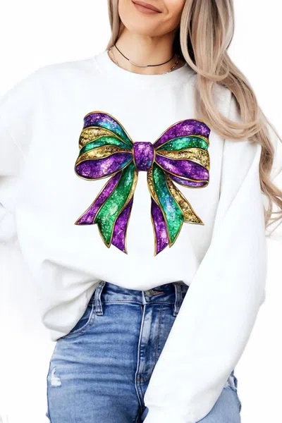 Mardi Gras Bow Sweatshirt In White