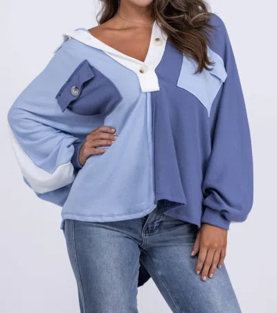 Kenzie Collared V-neck Top In Multi In Blue