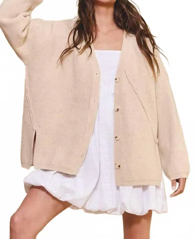 Solid Blushed Knit Oversize Henley Top In Beige In Neutral