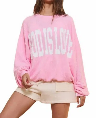 Print Comfy Oversize Ribbed Graphic Sweatshirt In Baby Pink