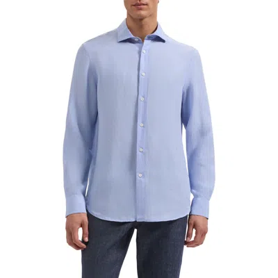 Axel Shaped Fit Linen Button-up Shirt In Blue
