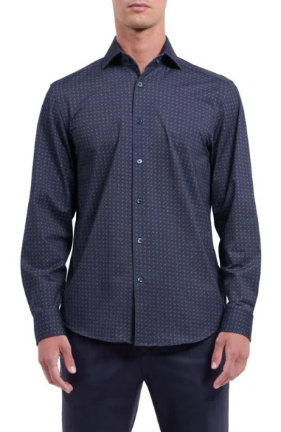 Julian Shaped Fit Black Stretch Cotton Jacquard Button-up Shirt In Green