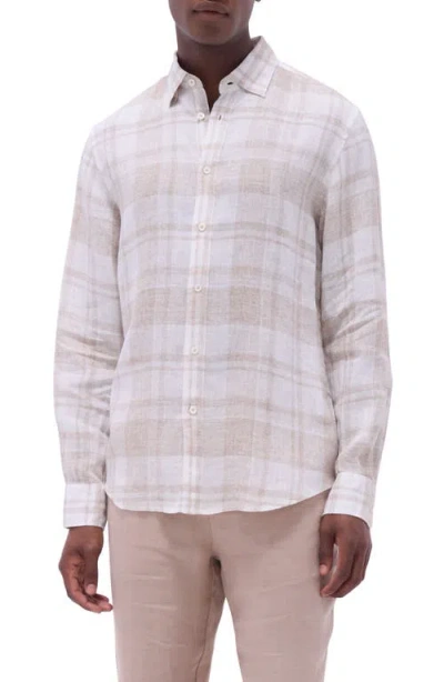 Julian Plaid Slub Linen Button-up Shirt In Sand