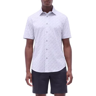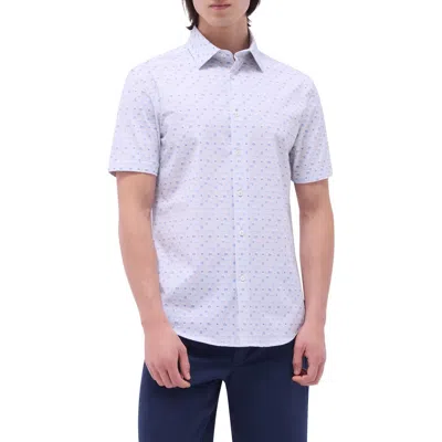 Miles Ooohcotton® Bowling Pin Print Short Sleeve Button-up Shirt In Ice
