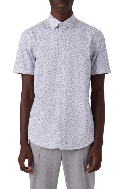 Shaped Fit Print Stretch Cotton Short Sleeve Button-up Shirt In Blue