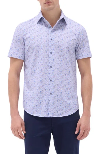 Orson Floral Stripe Short Sleeve Stretch Cotton Button-up Shirt In Air Blue