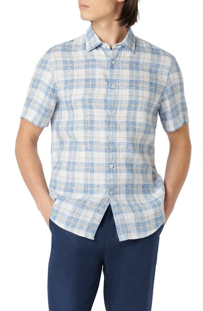 Orson Shaped Fit Short Sleeve Linen Button-up Shirt In Classic Blue