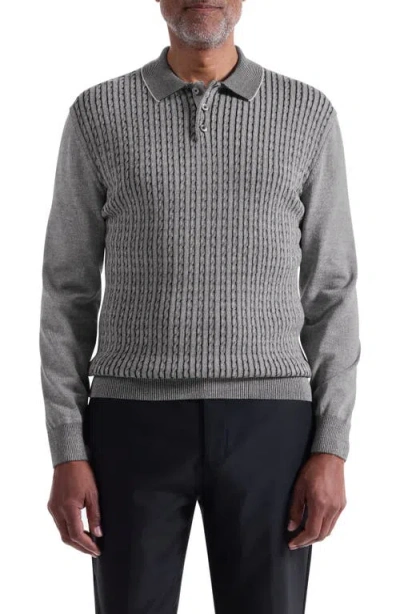 Cable Stitch Cotton Blend Polo Sweater In Gray