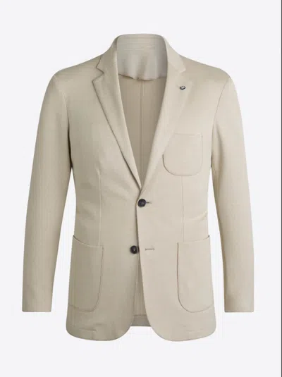 Pre-owned Men's Two Button Cotton Knit Blazer Msrp $420 In Beige