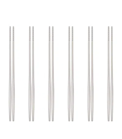 Set Of 6 Stainless Steel Natura Chopsticks In Metallic