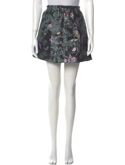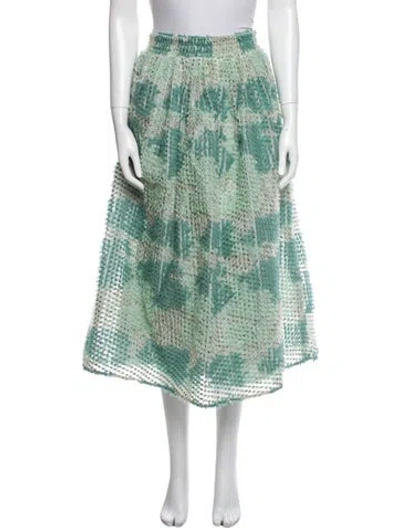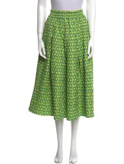 Pre-owned Floral Print Midi Length Skirt In Green