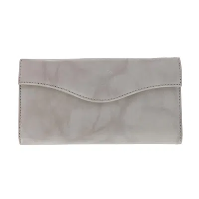 Women's Leather Long Bifold Organizer Wallet With Floral Emboss In Grey