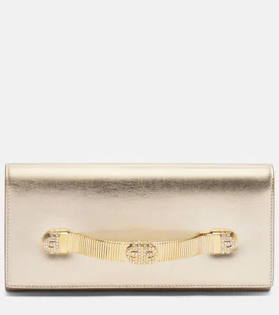 Ginkgo Crystal-embellished Suede Clutch In Gold