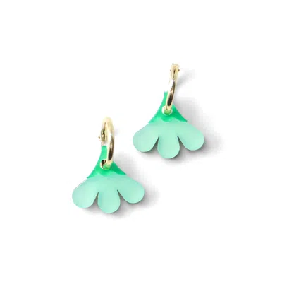 Women's Baby Daisy Dangly Hoop Earrings In Light Green
