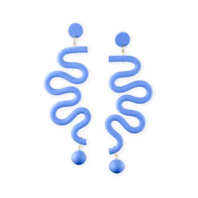 Women's Small Tube Squiggles Dangly Earrings In Cornflower Blue