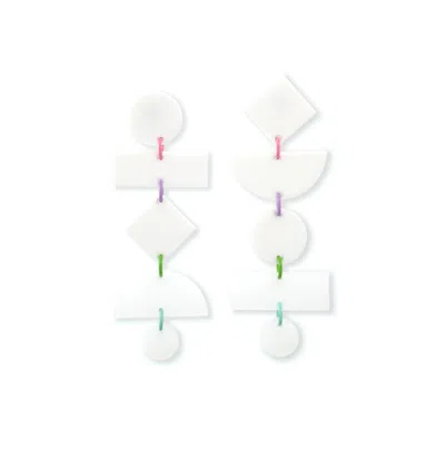 Women's Neutrals / White Small Tube Squiggles Dangly Earrings In White