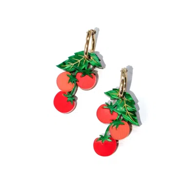 Men's Red Tomato On-the-vine Dangly Hoop Earrings