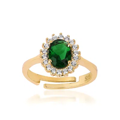 Women's Gold Emerald And White Cut Ring Adjustable Pave Stone