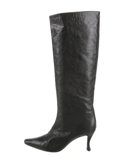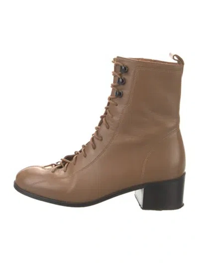 Pre-owned Embossed Leather Sock Boots In Neutral
