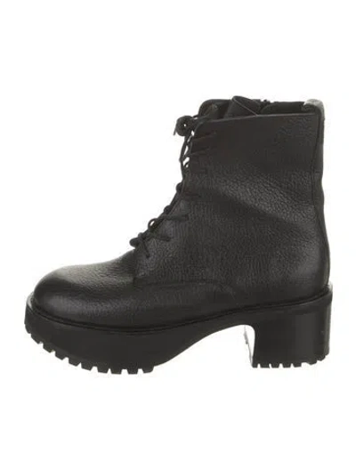 Pre-owned Leather Colorblock Pattern Lace-up Boots In White