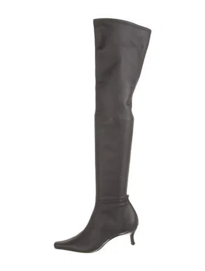 Pre-owned Leather Colorblock Pattern Sock Boots In Black