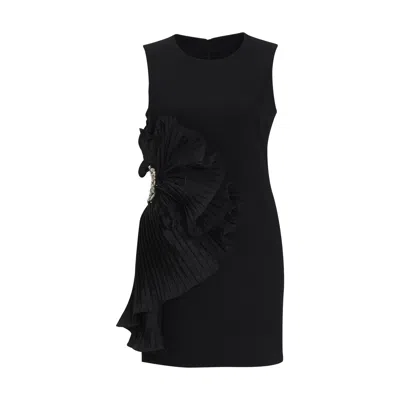 Women's Black Embellished Mini Dress With Ruffle Detail