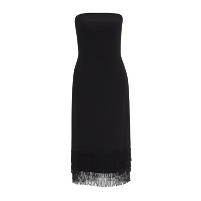 Women's Black Strapless Midi Dress With Crystal Fringes