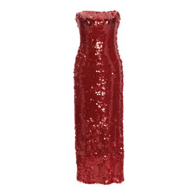 Women's Sequin Strapless Gown In Red
