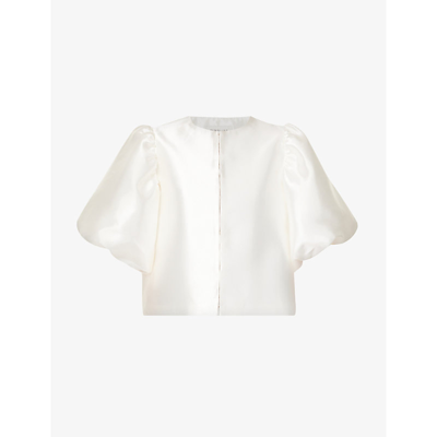 Womens Ivory Cleo Round-neck Puff-shoulder Woven Blouse