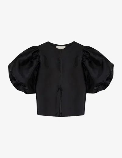 Womens Black Cleo Balloon-sleeve Satin Blouse
