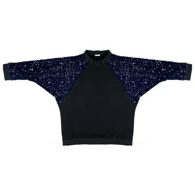 Women's Black / Blue Unisex Oversized Raglan Sleeve Sequins Sweater - Navy In Black/blue