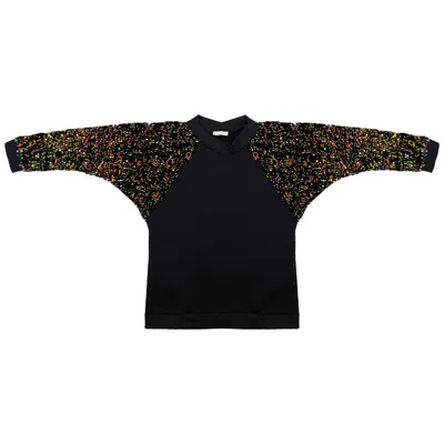 Women's Black Unisex Oversized Raglan Sleeve Sequins Sweater - Iridescent Multi Color