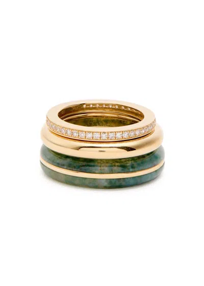 Classic Agate And 18kt Gold Rings In Green