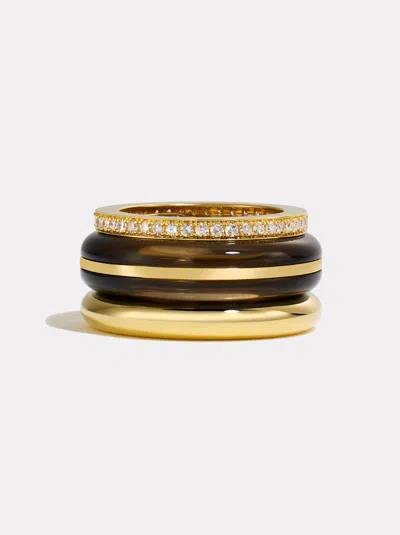 Classic Ring Stack | Smokey Quartz In Gold
