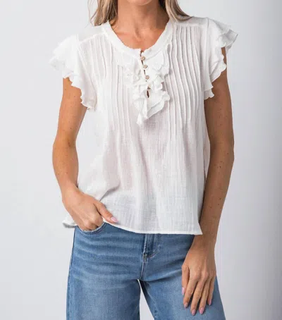 Woven Cotton Eyelet Button Down Square Neck Top In White