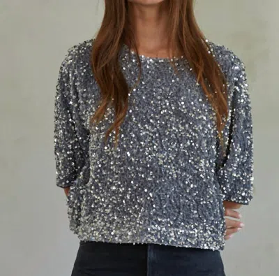 Sequin Velvet Round Neck Short Sleeve Top In Dark Grey In Gray