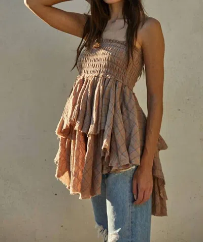 Woven Cotton Gingham Ruffled Blouse In Brown