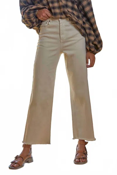 Woven Cotton Wide Leg High Waist Denim Jeans In Cream In White