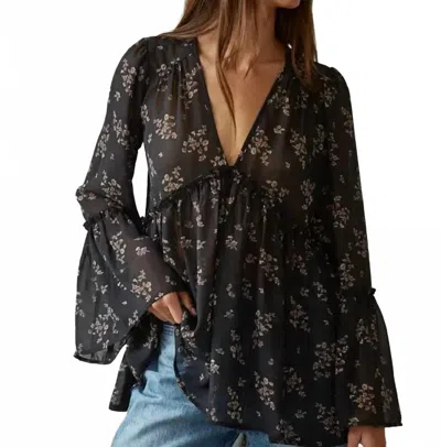 Woven Polyester Chiffon See Through Floral Blouse In Black