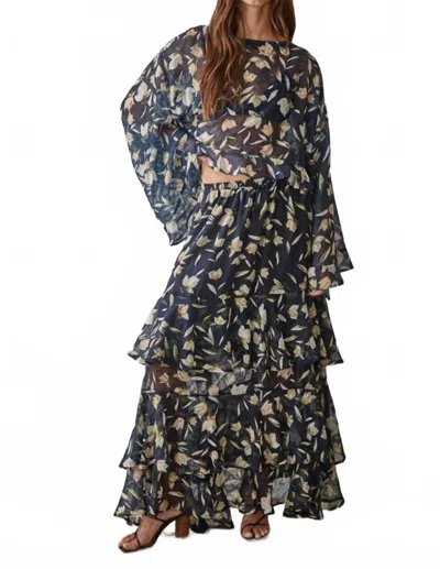 Aether Bloom Ruffle Maxi Skirt In Navy Multi