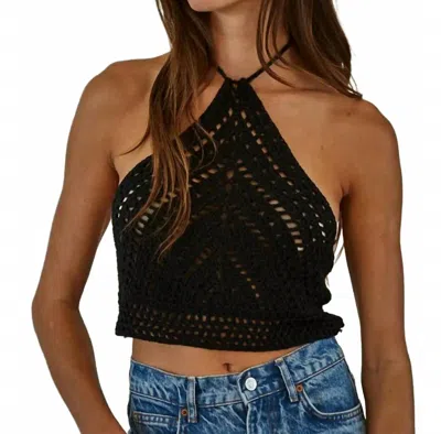 Crochet Halter Tie Crop Top In Black