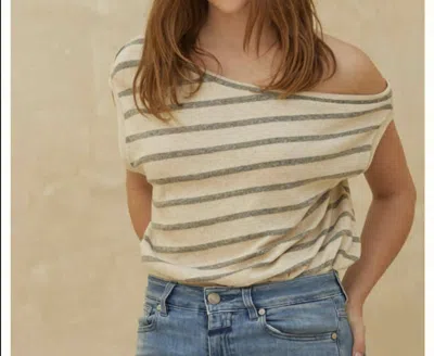 Nikola Wide Leg Striped Pant In Ivory Denim In Black