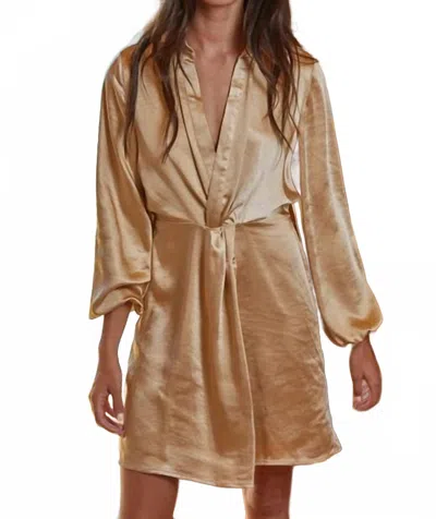 Satin Collar Long Sleeve Dress In Gold