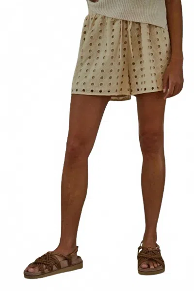 Woven Eyelet Straight Leg Shorts In Natural In Neutral