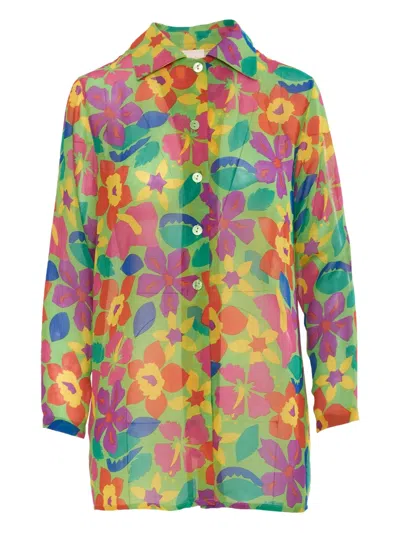 Pre-owned Floral-print Semi-sheer Shirt In Green