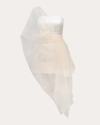 Women's Henrietta Satin Organza Asymmetric Mini Dress In White