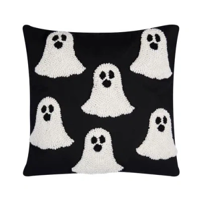 C&f Home Ghost Pattern Halloween Hooked Accent Throw Pillow 18" X 18" In Black