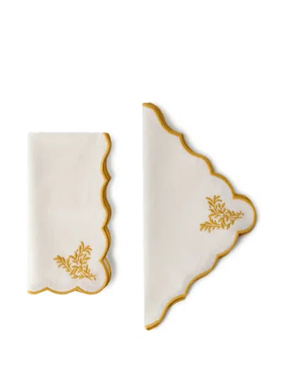 Floral Medley Embroidered Linen Napkins (pack Of Six) In Neutral