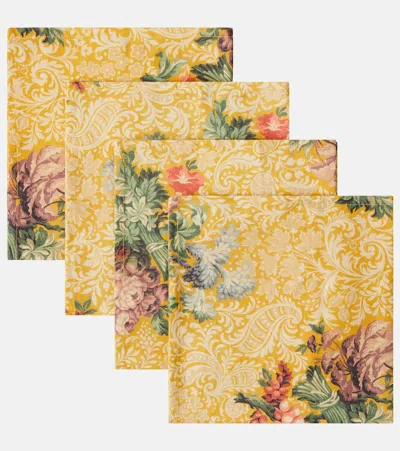 Peonia Set Of 4 Linen Napkins In Yellow