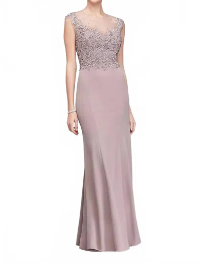 Sheer Neck Gown In Dusk/mauve In Multi